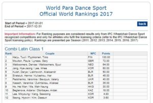 (kuvakaappaukset sivulta https://www.paralympic.org/world-rankings/wheelchair-dance-sport)