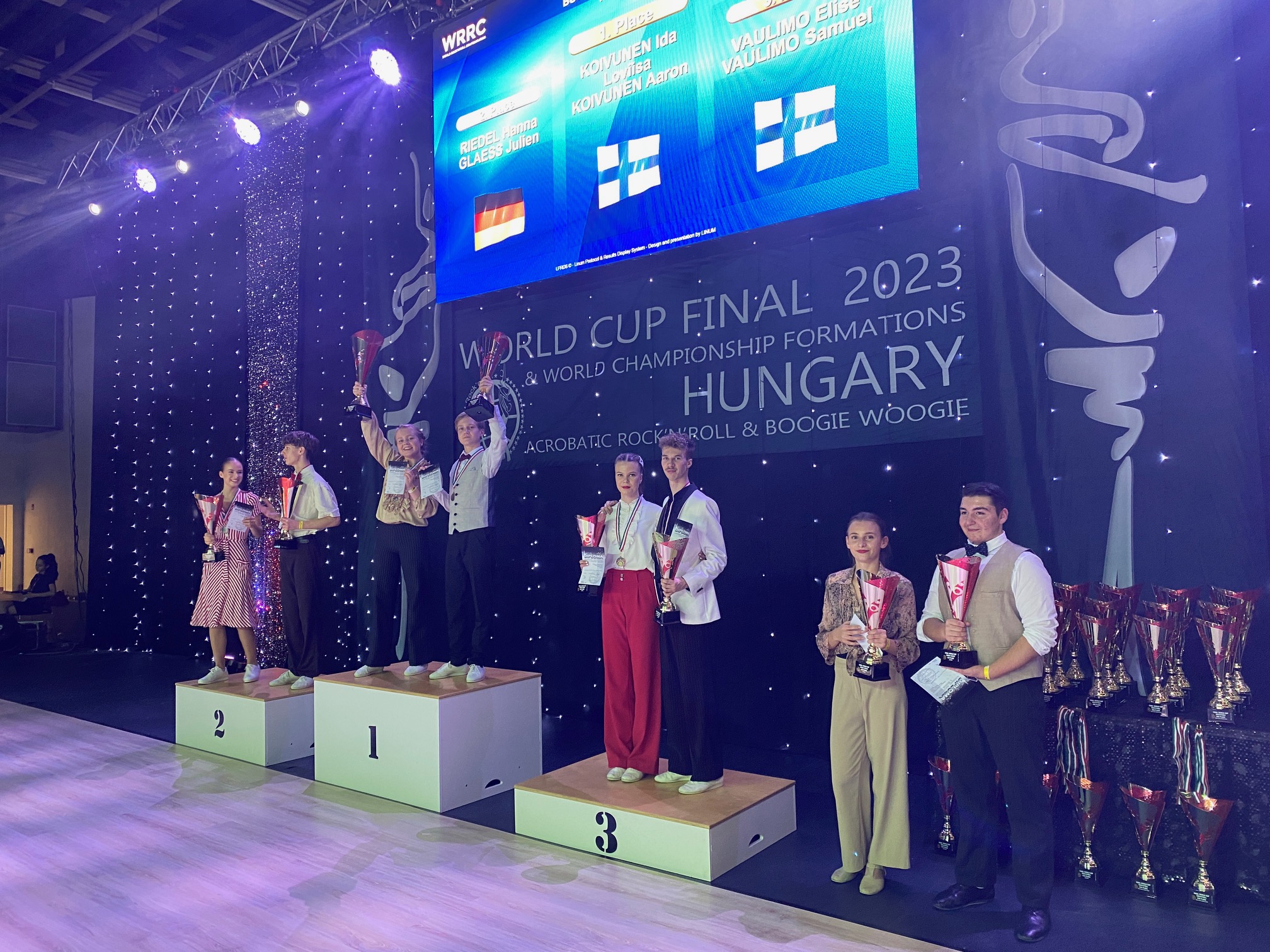 Budapestissa tanssittiin lauantaina 9.12. boogie woogien World Cup -finaali. Suomalaiset pärjäsivät kilpailussa hyvin, ja Ida-Loviisa ja Aaron Koivunen jatkoivat hienoa kauttaan voittamalla juniorisarjassa sekä kilpailun että koko World Cupin!