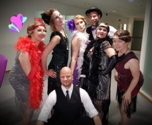 Swing Teamin energinen esiintymisryhmä tuo iloa ja vauhtia erilaisiin tapahtumiin ja juhlatilaisuuksiin! Olipa kyseessä yritysjuhlat, häät, syntymäpäivät tai pikkujoulut, ryhmämme tarjoamat näyttävät ja monipuoliset tanssiesitykset nostavat tunnelman kattoon. Esiintymisiämme voi räätälöidä teeman ja aikakauden mukaan – aina vanhan ajan lavatanssinostalgiaa henkivistä esityksistä villiin 20-luvun gangsterimeininkiin, 50-luvun rock-henkeen tai moderniin biletys-swingiin.