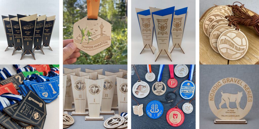 Ota yhteyttä, niin suunnitellaan tuleviin kilpailuihinne näyttävät & persoonalliset puiset palkinnot!