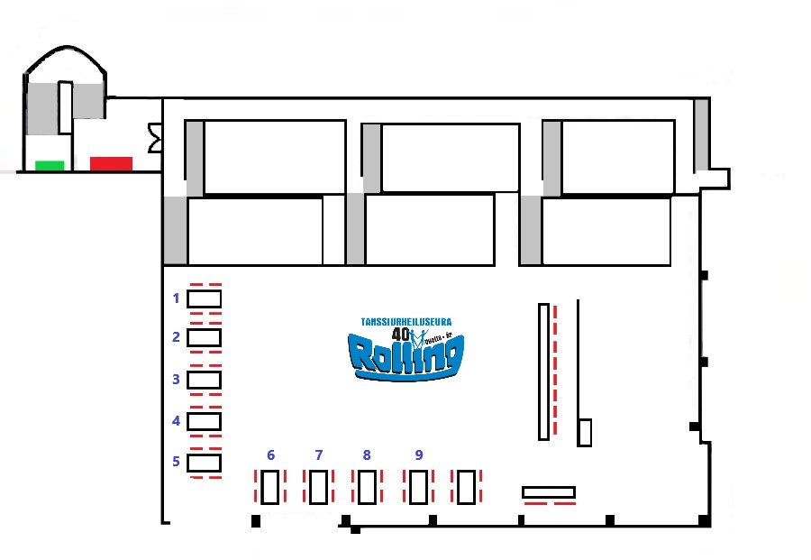Kilpailijoiden ja yleisön tilojen välistä liikkumista tulee vältää. Tarkennamme tilakarttaa ja muuta tietoa kilpailusivuillemme (linkki tulossa)